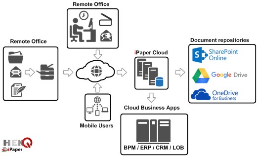 - The system offers a number of flexible systems integration points to achieve a simple, yet effective way to notify the respective cloud based business systems when information enters the organization through the document processes.