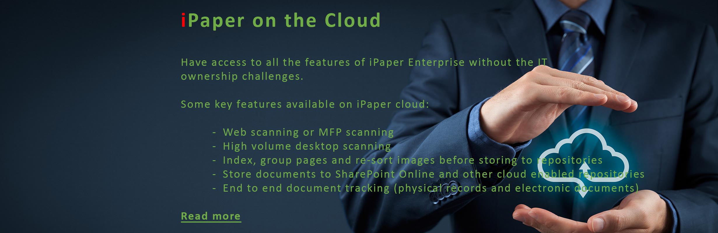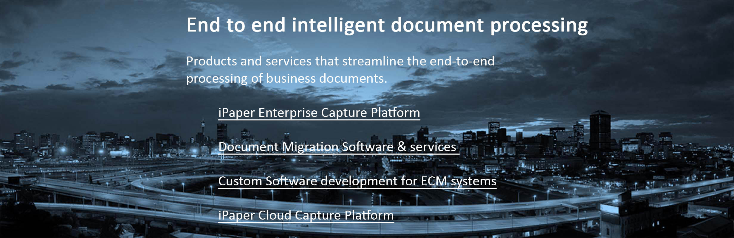 iPaper Enterprise Capture Platform Document Migration Software & services Custom Software development for ECM systems iPaper Cloud Capture Platform iPaper Enterprise Capture Platform Document Migration Software & services Customized solutions iPaper on the Cloud